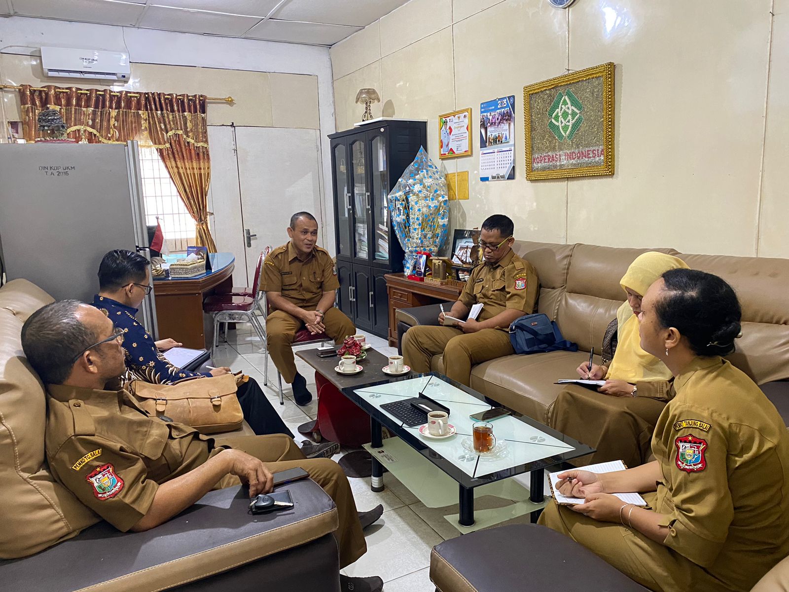 Badan Perencanaan Pembangunan, Riset dan Inovasi Daerah Pemerintah Kota, Tanjungbalai, Warsino, Budi Pramana dan kawan – kawan berkunjung ke Dinas Koperasi, Usaha Kecil dan Menengah Kota Tanjungbalai bertemu dengan bapak Agus Salim Lubis, ST, M.M, mengenai Data/Informasi terkait Permasalahan dan Isu Strategis pembangunan.